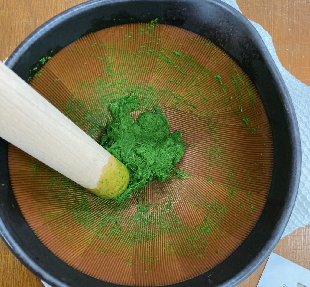 施設内に自生しているよもぎを摘み取り、草だんごをつくります。